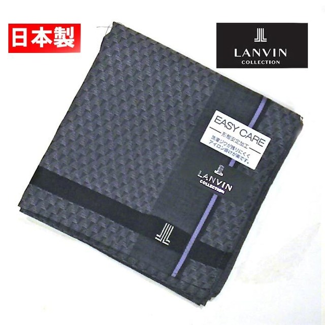 ランバン LANVIN メンズハンカチ 形態安定加工 ハンカチ 日本製・ブラック 2216-51