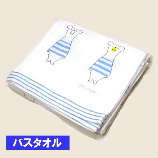 2114-02 コンテックス・キッシュ 2重ガーゼ バスタオル・ブルー (ベビー 赤ちゃん 子供 薄手 シーツ タオルケット くま クマ)