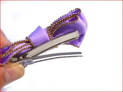 1124-32 ヘアクリップ ゴールド縁取り リボンベイク ライトパープル