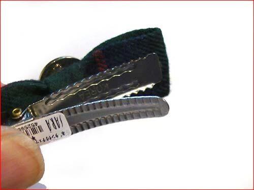 1124-68 ヘアクリップ ゴールドボタン付き リボンベイククリップ チェック グリーン
