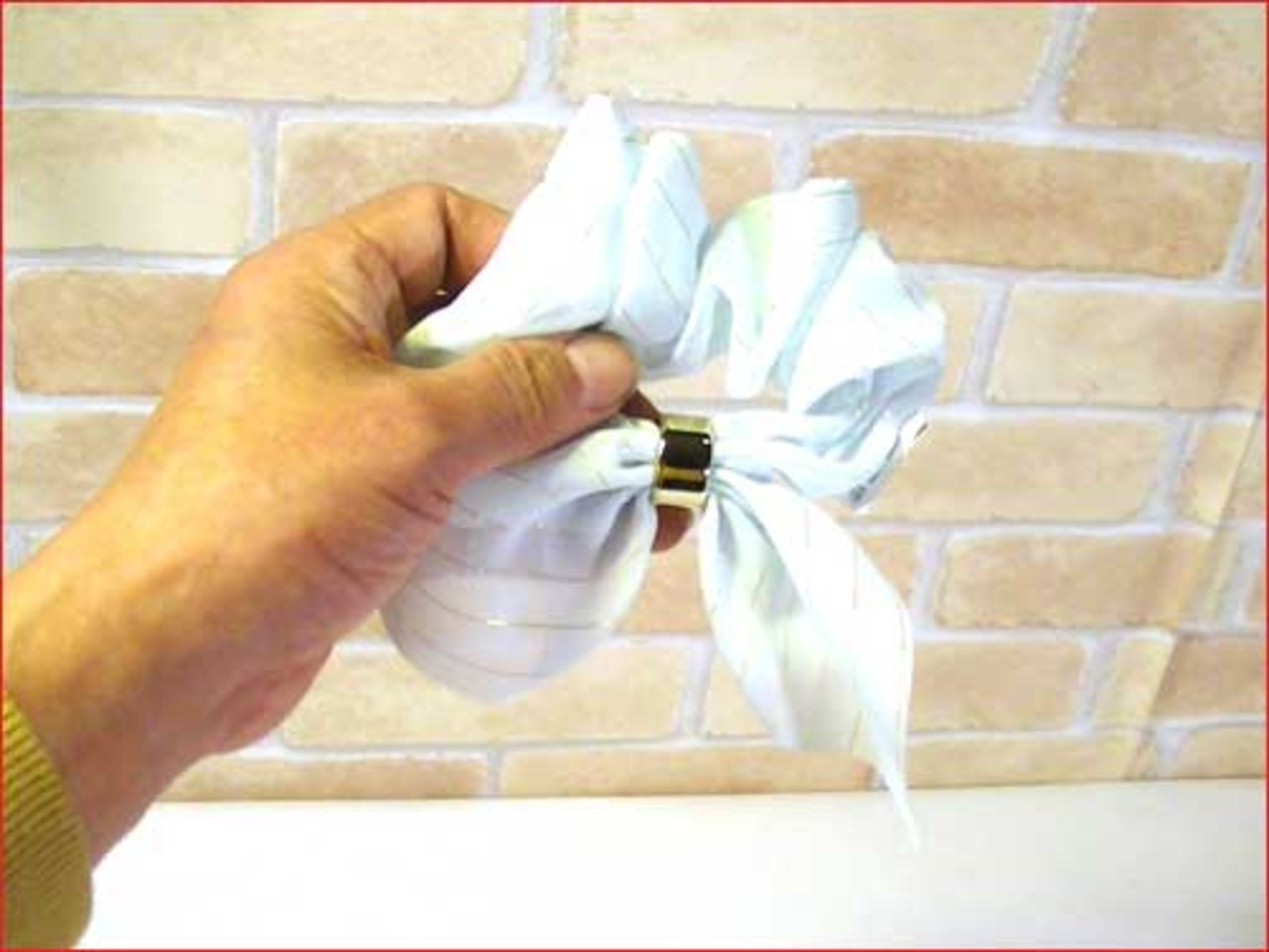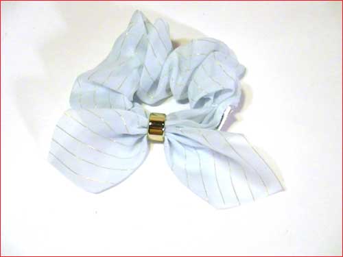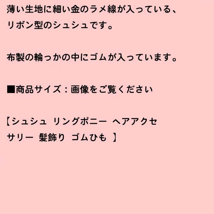 薄い生地に細い金のラメ線が入っている、リボン型のシュシュです。
