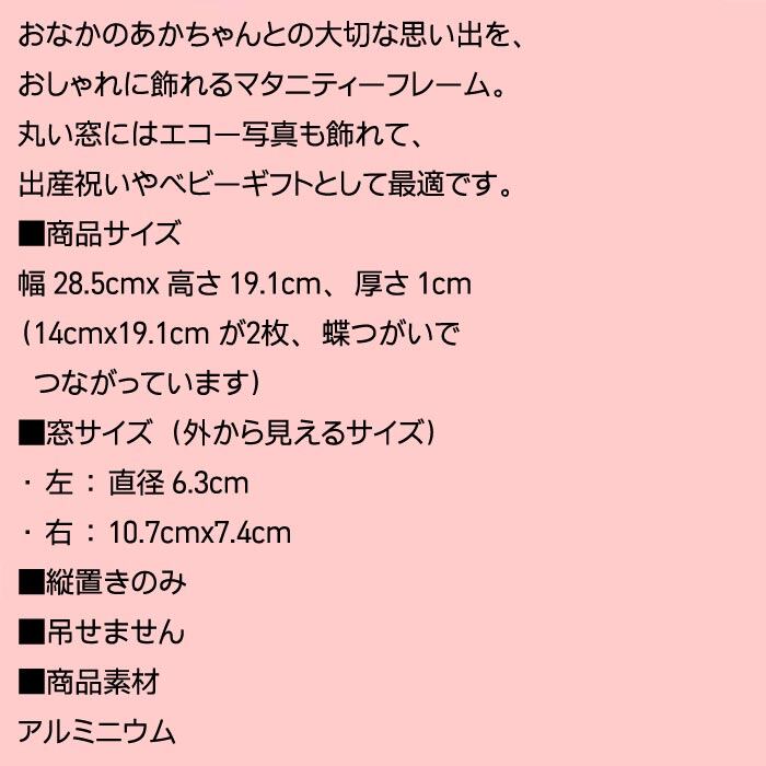おなかのあかちゃんとの大切な思い出を、おしゃれに飾れるマタニティーフレーム。