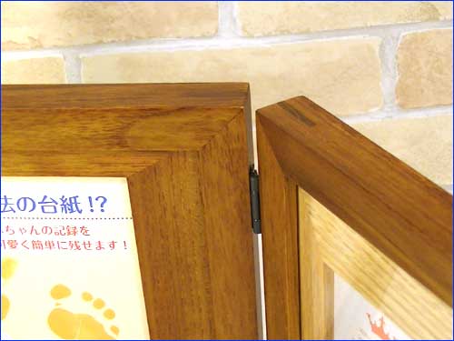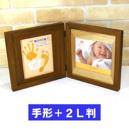 0717-23 フォトフレーム 木製 ペア 2面 2連 写真立て 赤ちゃん手形+2L判写真 天然木 フォトフレーム・ブラウン