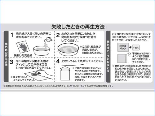 ・発色液は多少べたつきますが、化粧品等にも使われている安全性の高い成分を使用しております。