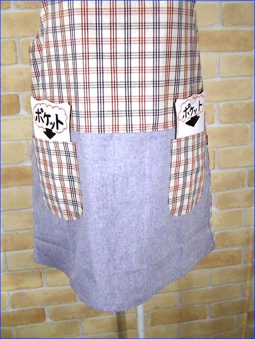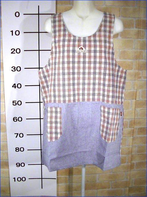 2313-28 エプロン うしろ・ボタン&ひも結び チェック柄 エプロン