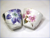 桜と鉄線柄のペアカップ(湯飲み)に桜柄のポットを加えた食器セットです。