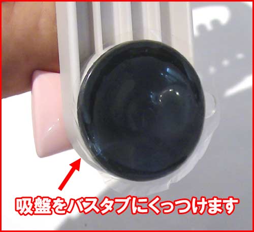 おふろのフチに吸盤で固定して、首や肩のマッサージ、おふろの底に置けば足ウラのマッサージができます。