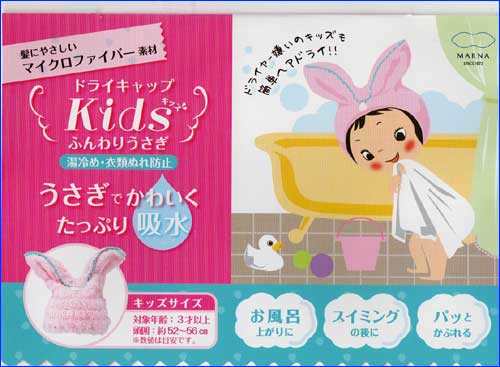 1630-25 マーナ 子供用 ドライタオルキャップ マイクロファイバー ふんわりウサギ(頭囲40センチ)