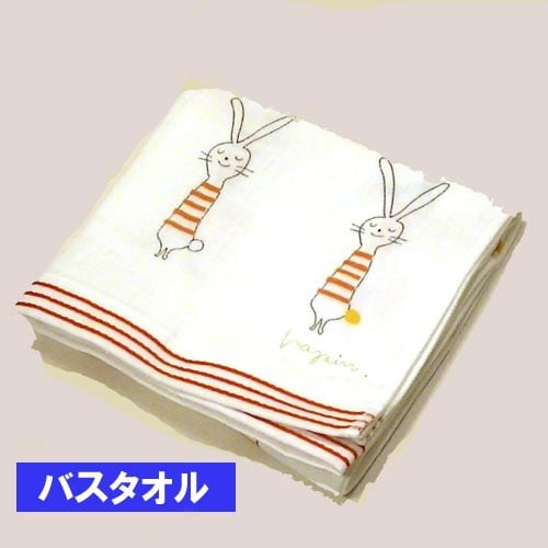 2114-03 コンテックス キッシュ 2重ガーゼ バスタオル・オレンジ (ベビー 赤ちゃん 子供 薄手 シーツ タオルケット うさぎ ウサギ)